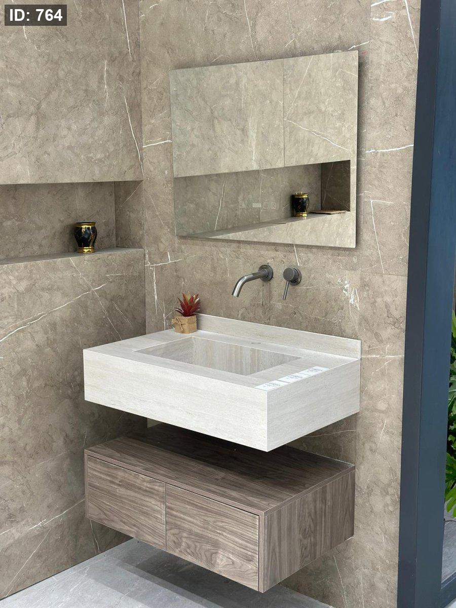وحدة تخزين خشبية: تصميم خشبي فاخر مقاوم للرطوبة، يضيف لمسة دفء لا تقاوم للحمام.