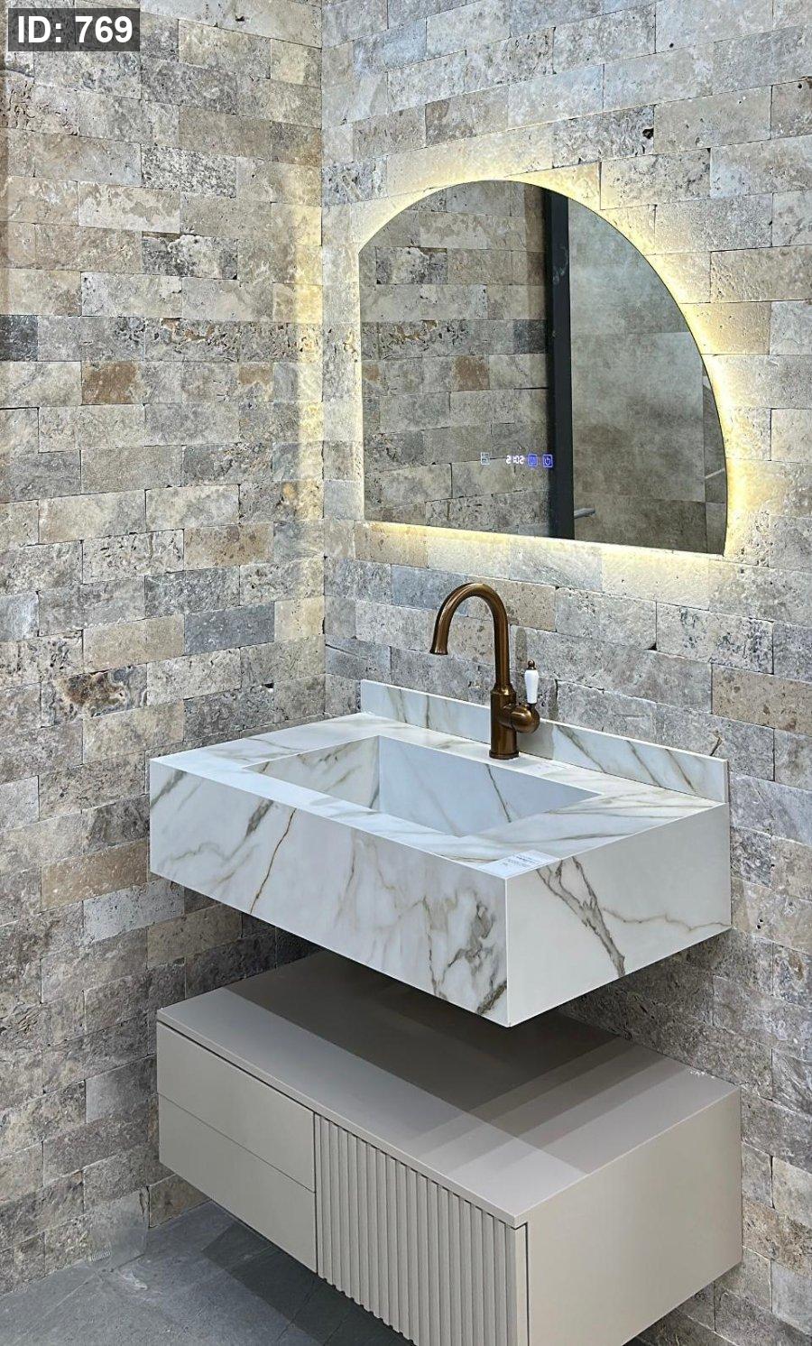 هذا التصميم هو الحل الأمثل..مغسلة بورسلان+مراة مضيئة+خزانة .